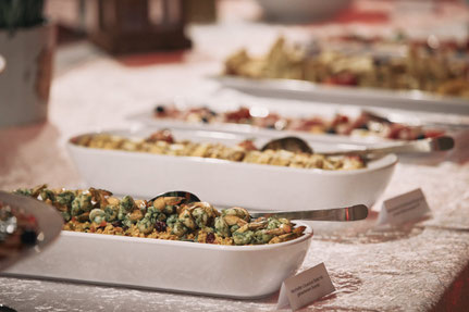 Beim Essen sind Sie völlig ungebunden. Gerne geben wir Ihnen verschiedenste Catering-Kontakte weiter.